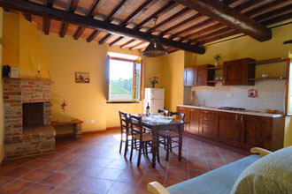 con caminetto, angolo cottura, 2 camere, bagno con doccia.
